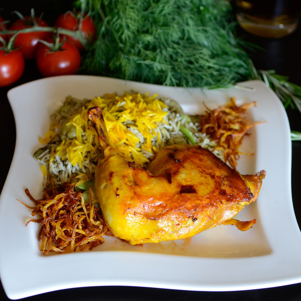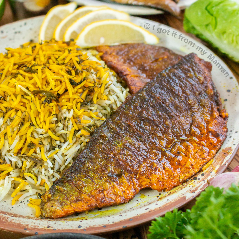 ۵۰۰ گرم ماهی قزل آلا کبابی، 350 گرم برنج ایرانی، دورچین: گوجه کبابی، سیب زمینی، لیمو، ترشی کلم، فلفل کبابی، کره