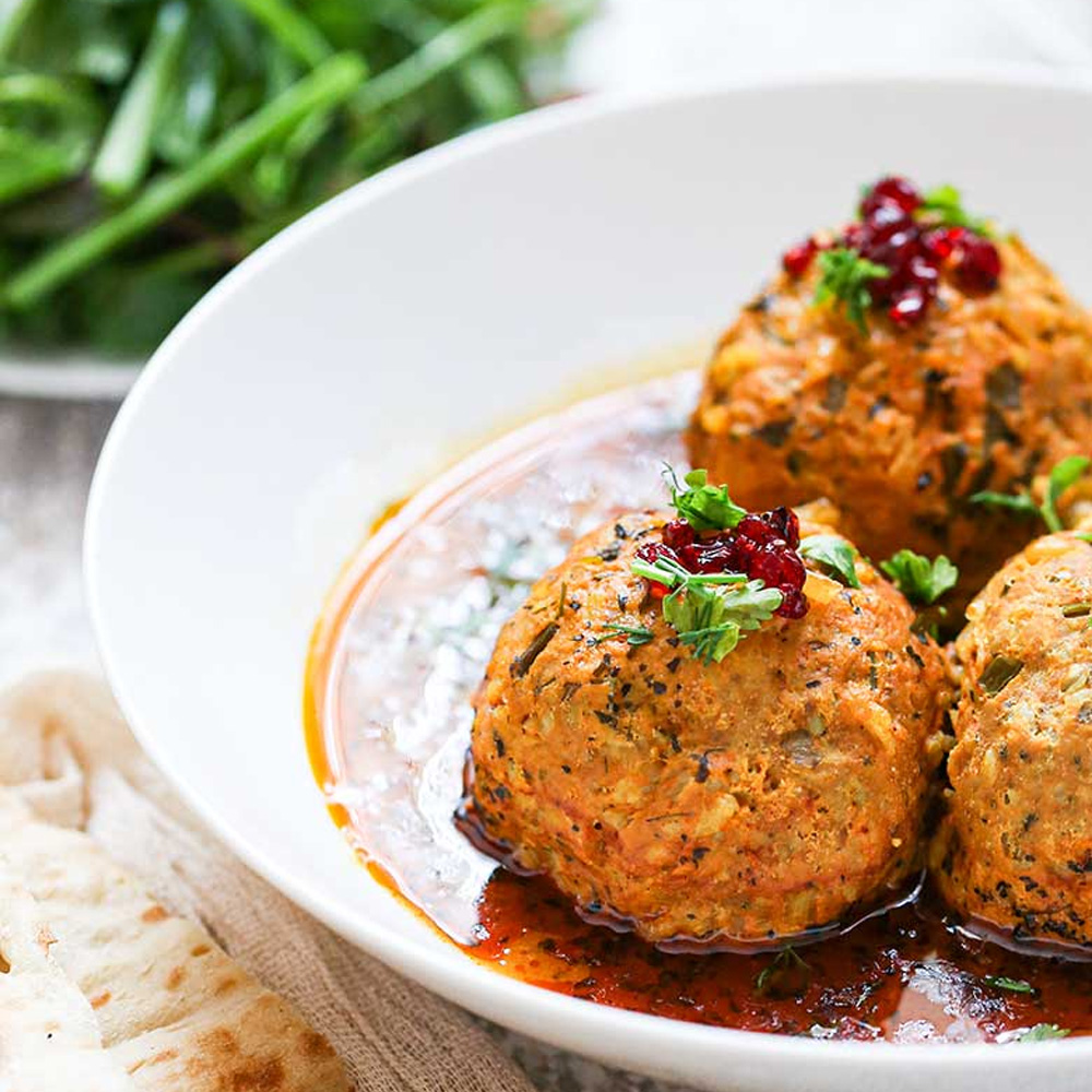 کوفته تبریزی ۲۰۰ گرمی شامل گوشت چرخ شده گوسفندی، برنج ایرانی، تره، مرزه، لپه چرخ شده، تخم مرغ، آرد نخود چی، دورچین: ریحان، لیمو ترش، یک عد نان محلی
